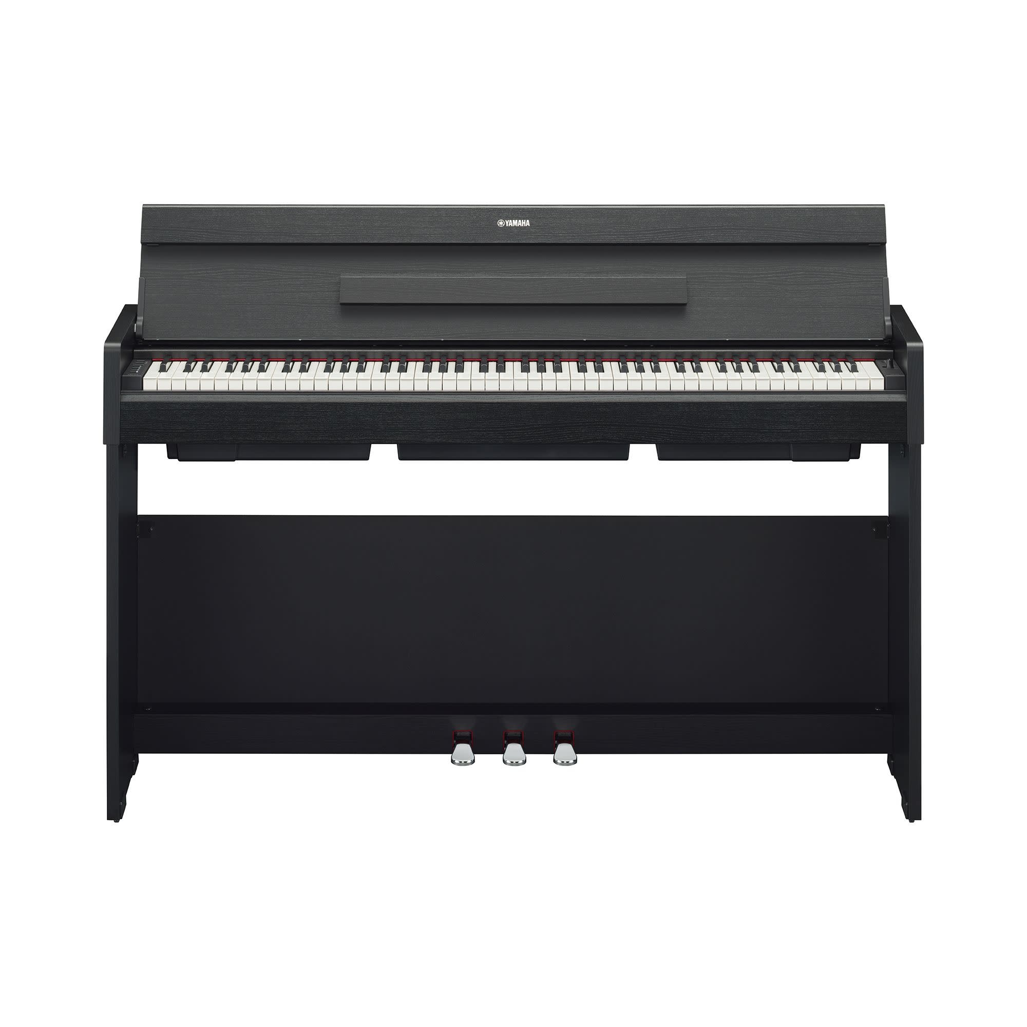 Slim size, 88-key model of the ARIUS digital piano featuring weighted keyboard. With Yamaha's CFX concert grand piano sound as a built-in Voice, experience a rich expressive playing feel with the GHS keyboard. Includes newly equipped ear-friendly functions, and compatibility with Yamaha’s Smart Pianist app. Lid becomes flat tabletop when closed.