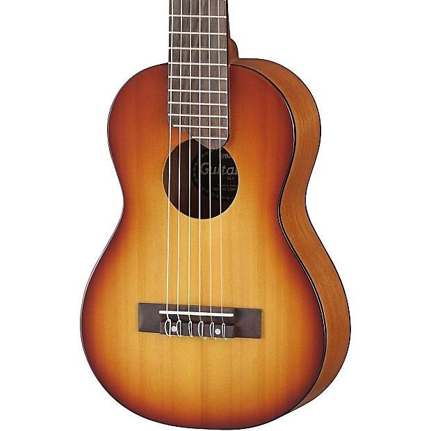 The Yamaha GL1 Mini 6-String Nylon Guitalele is half guitar, half ukulele, and 100% fun. A unique mini 6-string nylon guitar that is sized like a baritone ukulele (17" scale) and plays like a standard tuned guitar. The guitalele's tuning is pitched up to A (or up a 4th) at A/D/G/C/E/A. Includes gig bag.