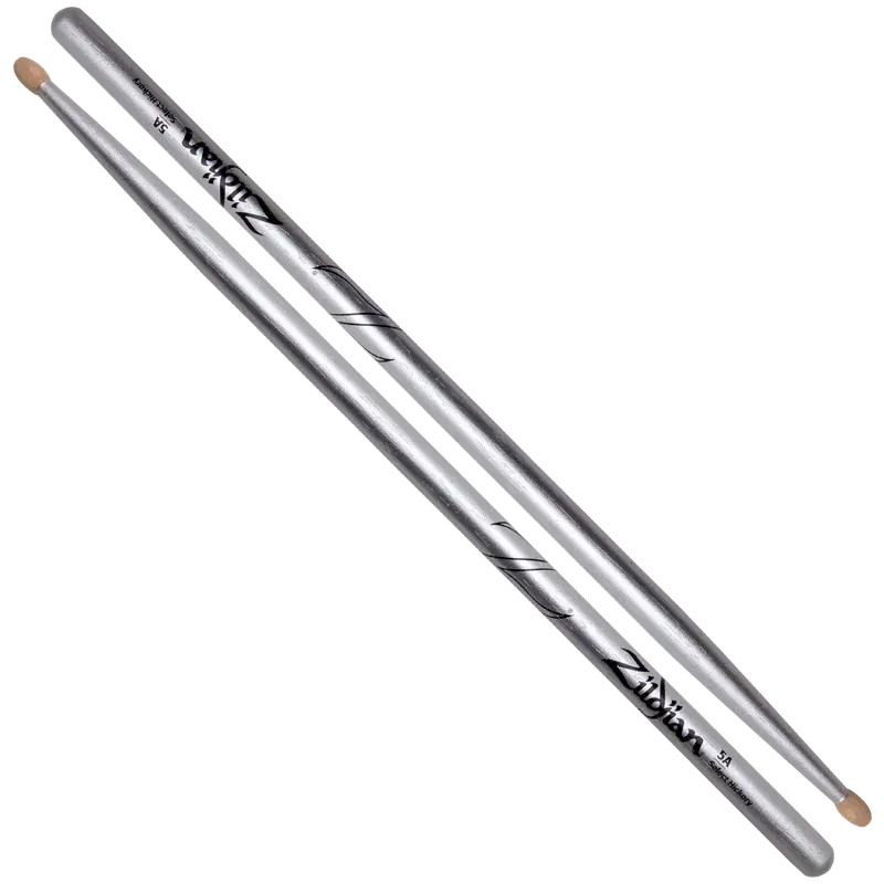 Zildjian Chroma Silver Metallic Hickory Drumsticks, Oval Wood Tip, 5A